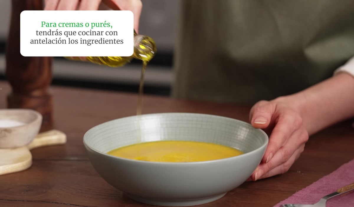 El modo Triturar es ideal para cocinar sopas, cremas y mucho más. También podrás elaborar deliciosos batidos y purés, preparar cócteles increíbles y hacer sorbetes y muchos otros postres helados. Solo tienes que seleccionar el tiempo y la velocidad final que prefieras para lograr la textura deseada: suave y sedosa, o densa y con mucho cuerpo.