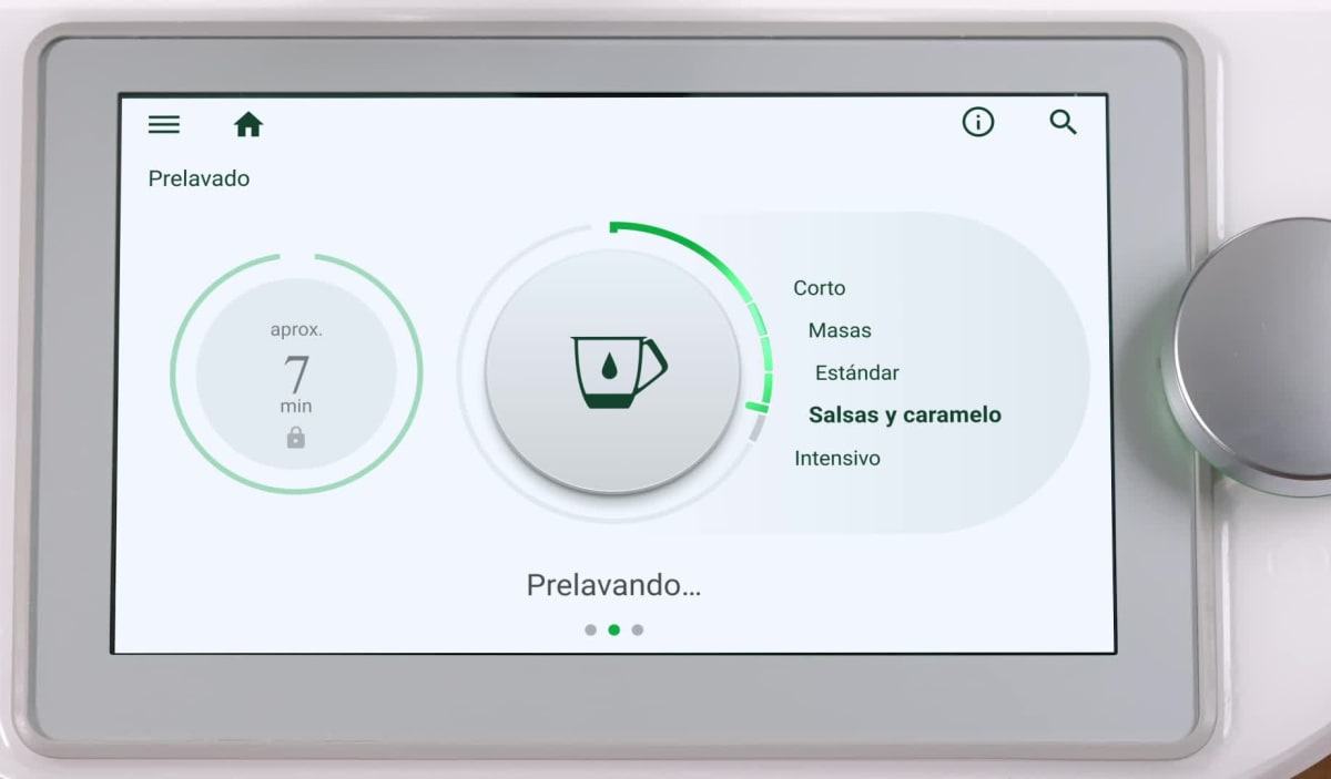 Con el modo Prelavado, solo tienes que escoger uno de los cinco programas y tu Thermomix® hará la tarea más dura. Este modo ayuda a eliminar los restos más difíciles del vaso y las cuchillas antes de la limpieza final en el fregadero o el lavavajillas.