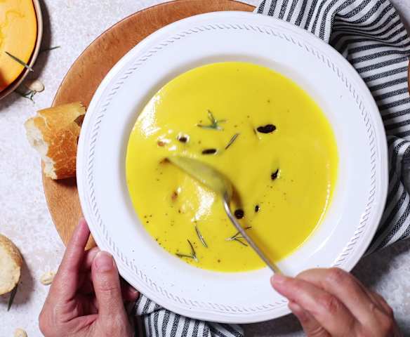 Vichyssoise de calabacín con huevo mollet y sus chips