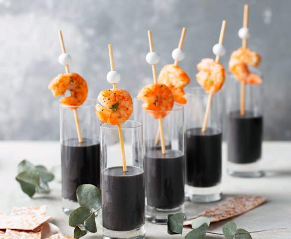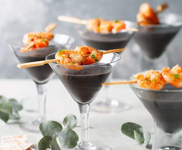 Vichyssoise negra con langostinos