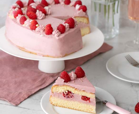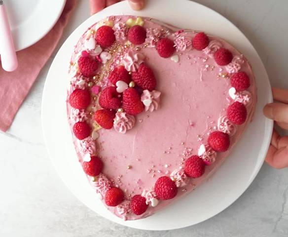 Tort szpinakowy z kremem limonkowym i żelką truskawkową