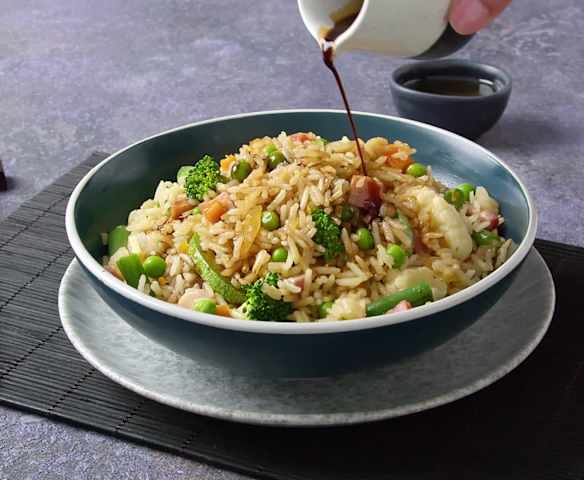 • mixed vegetables e.g. broccoli in small florets, frozen peas, cauliflower in small florets, green beans cut into pieces (1 in.), zucchini, in half moons (½ in.)